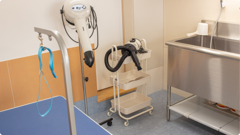 あとむでは充実した設備で、ワンちゃんネコちゃんを飼い主さん自身でシャンプーしていただけます!